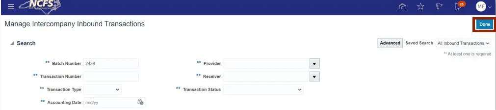 Step 1. Access the NCFS Home Page and click the Intercompany Accounting icon.