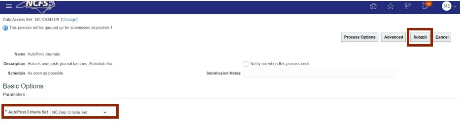 Step 20. Select the AutoPost Criteria Set drop-down, then click Submit.
