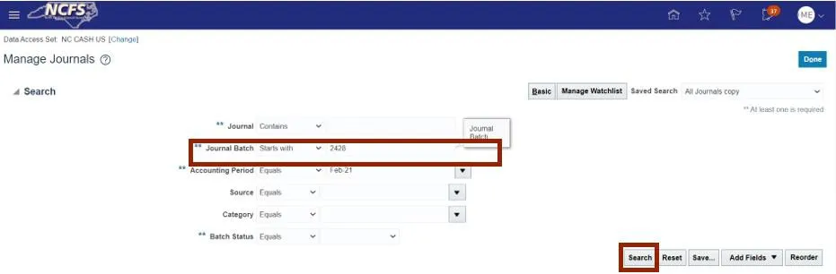 Step 6. The search results appear. Highlight the row and click on the Reverse Batch button.