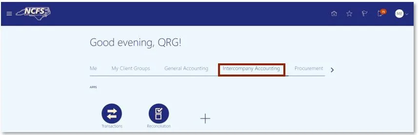 Step 1. Access the NCFS Home Page and click the Intercompany Accounting icon.