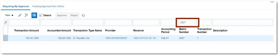 Step 18. Find the Transaction and highlight the row. Once highlighted, click the Approve button.