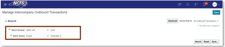 Step 19. Click Done to return to the Intercompany Transaction Home Screen.