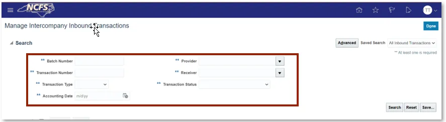 The NCFS Search capabilities are designed to make it easier to locate needed information. These capabilities assist users in retrieving and analyzing a large number of intercompany transactions to locate the desired transaction. The conditional operators and saved search functionalities allow for further refinement and efficiencies to accomplish this task.