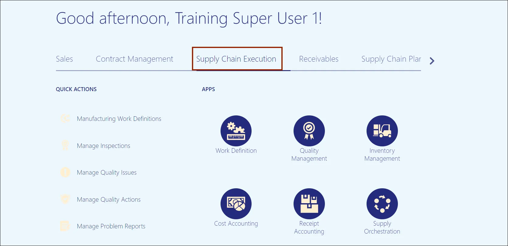 Step 2. On the Home page, click the Supply Chain Execution tab.