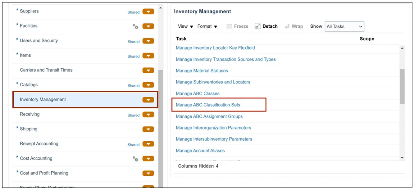 Step 7.     In the Inventory Management section, click Manage ABC Classification Sets.