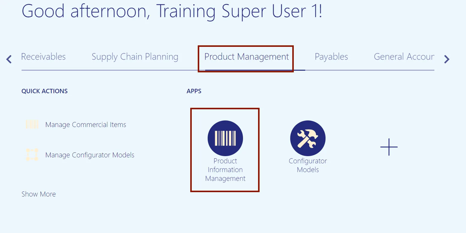 Step 2.    On the Home page, click on the Product Management tab and click Product Information Management app.