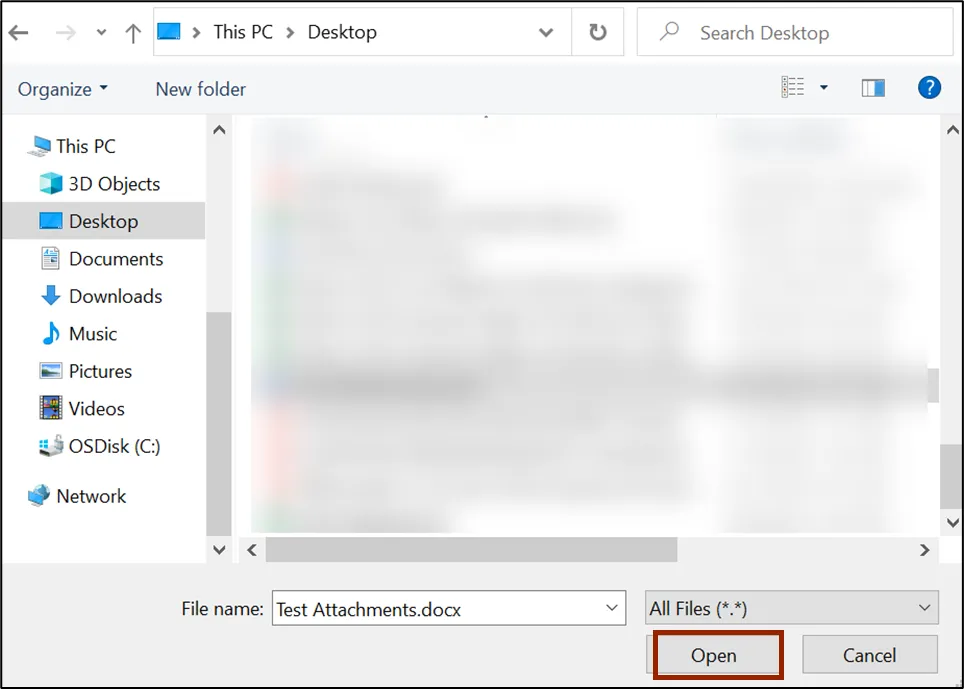 Step 9.    Select one or multiple files from the local desktop or folder and click the Open button.