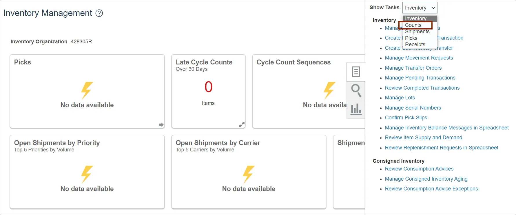 Step 7. On the Inventory Management page click on the Tasks icon.