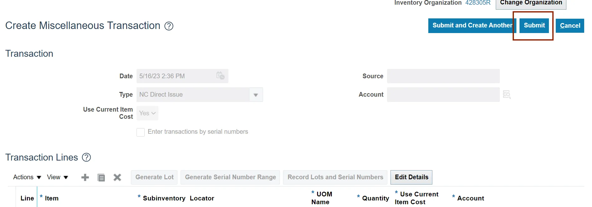 Step 8. Under the Transaction Lines section, enter the Item details.