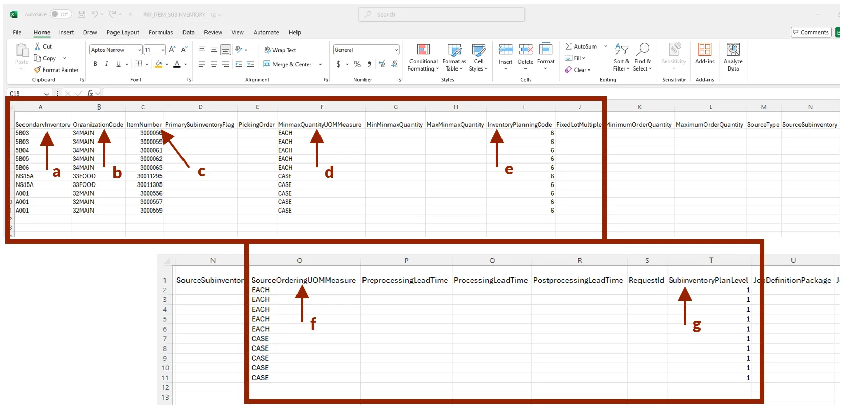 Step 4. Open the downloaded Subinventories Template.CSV file from your computer. This file will open in Excel.