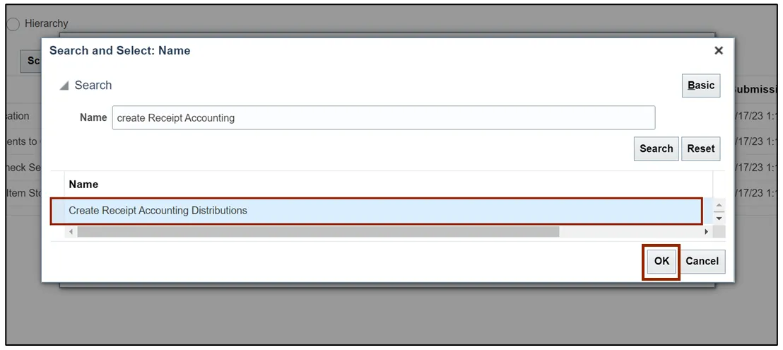 Step 6. In the Name field, enter Create Receipt Accounting and click the Search button.