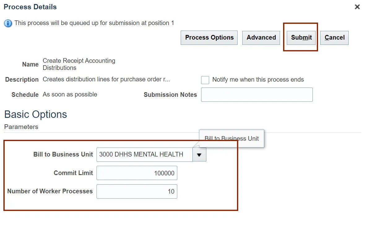 Step 9. Under the Basic Options section, enter the required Parameters and click the Submit button.