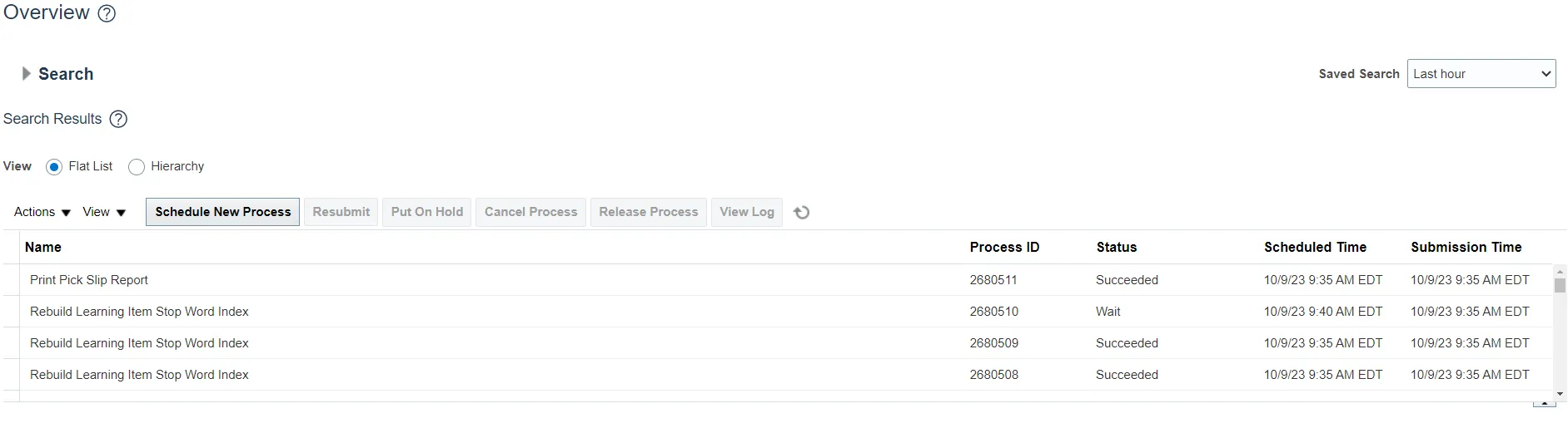 Step 2.    On the Scheduled Processes page, click Scheduled New Process.