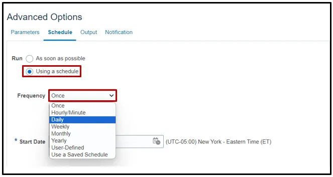 Step 7.    Click the Using a schedule radio button. Choose the frequency from the Frequency drop-down list.