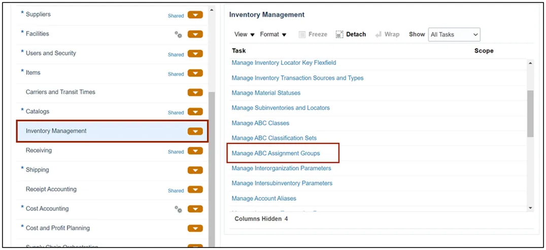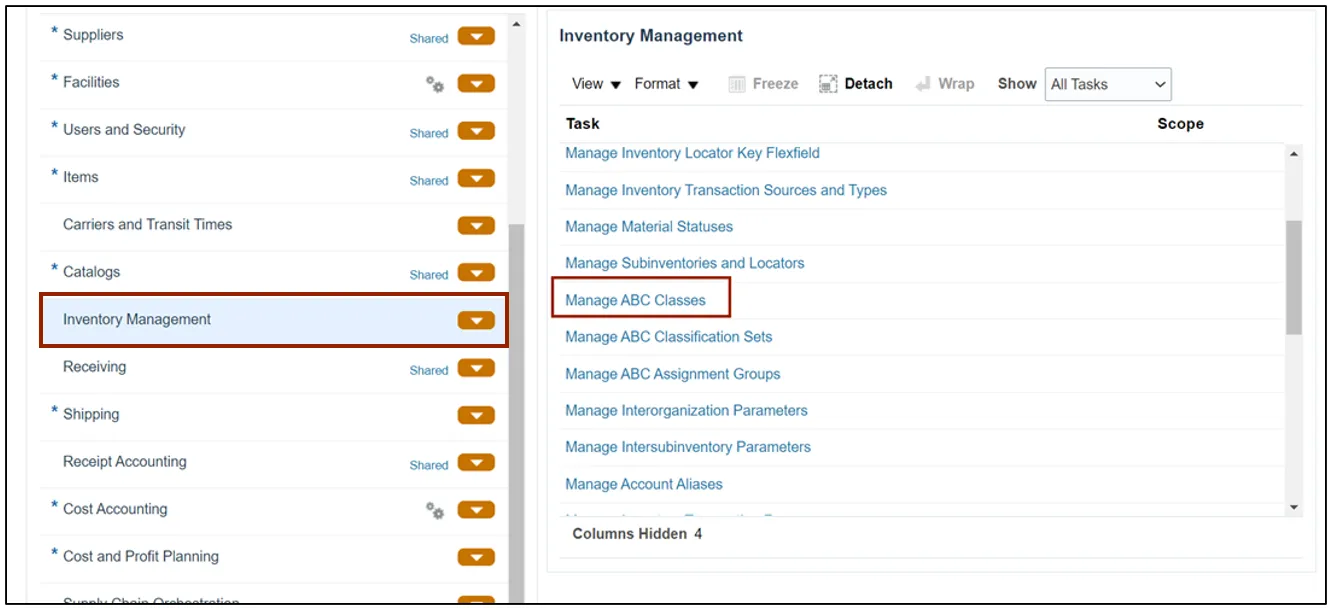 Step 9. In the Inventory Management section, click the Manage ABC Assignment Groups.