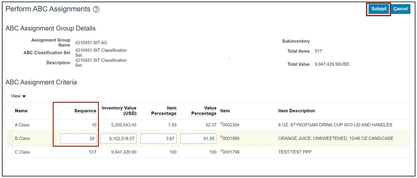 Step 10. Enter the Assignment Group Name and ABC Classification Set.
