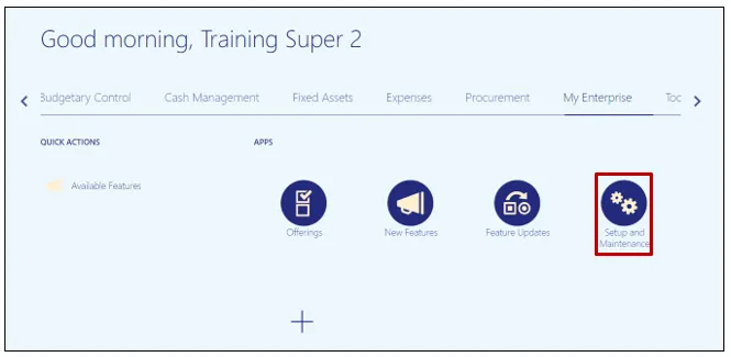 Step 2.    On the Home page, under the My Enterprise tab, click the Setup and Maintenance app.