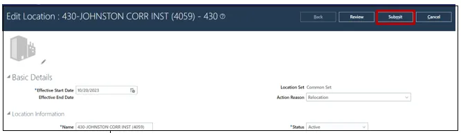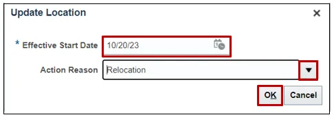 In this example a start date of 10/20/23 and a reason of Relocation were used.