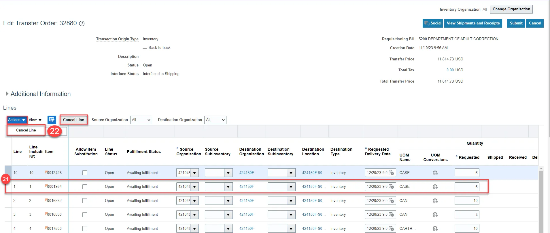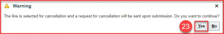 Step 22. Click the Actions drop-down menu and select Cancel Line or click the Cancel Line button.