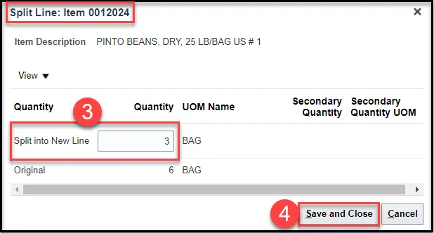 Step 3. The Split Line window will appear, enter deallocation quantity into the Split into New Line Quantity field.