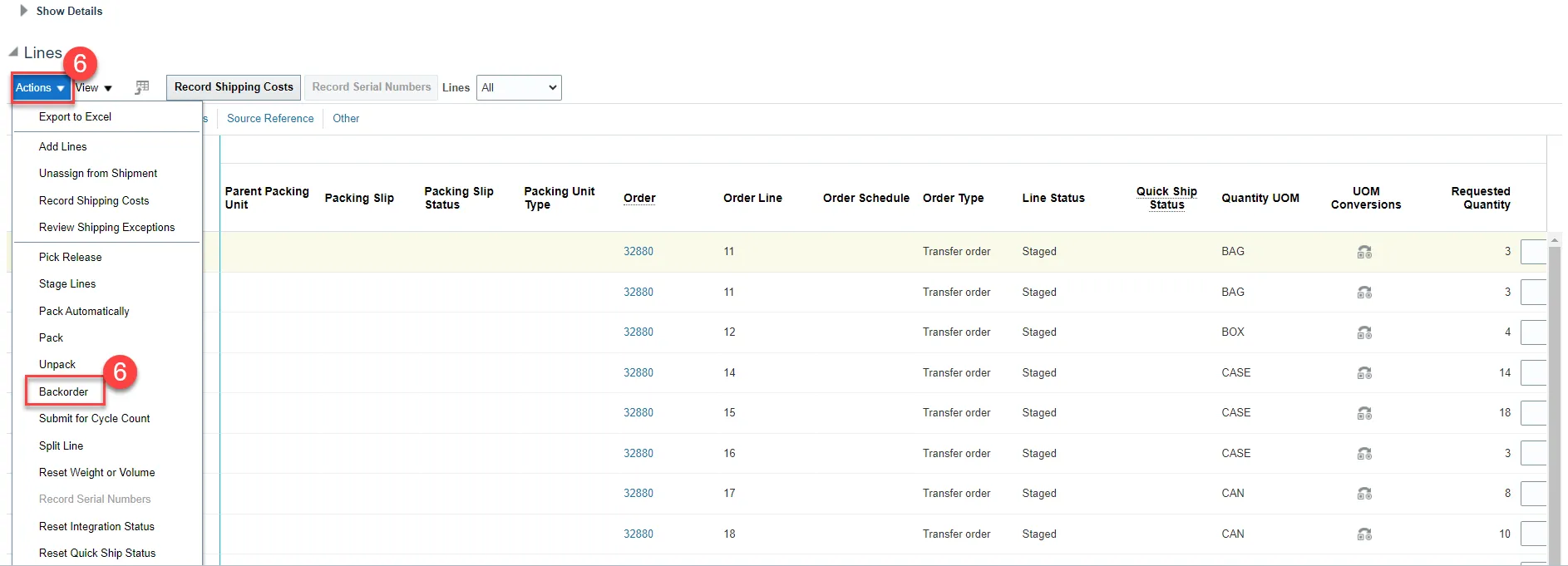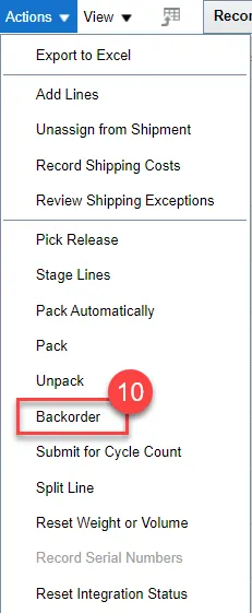 Step 6. Click the Actions drop-down menu and select Backorder.