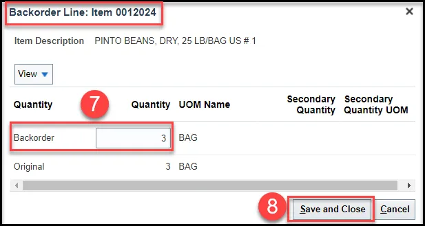 Step 7. The Backorder Line confirmation window will appear. Leave the full quantity populated in the Backorder quantity field.