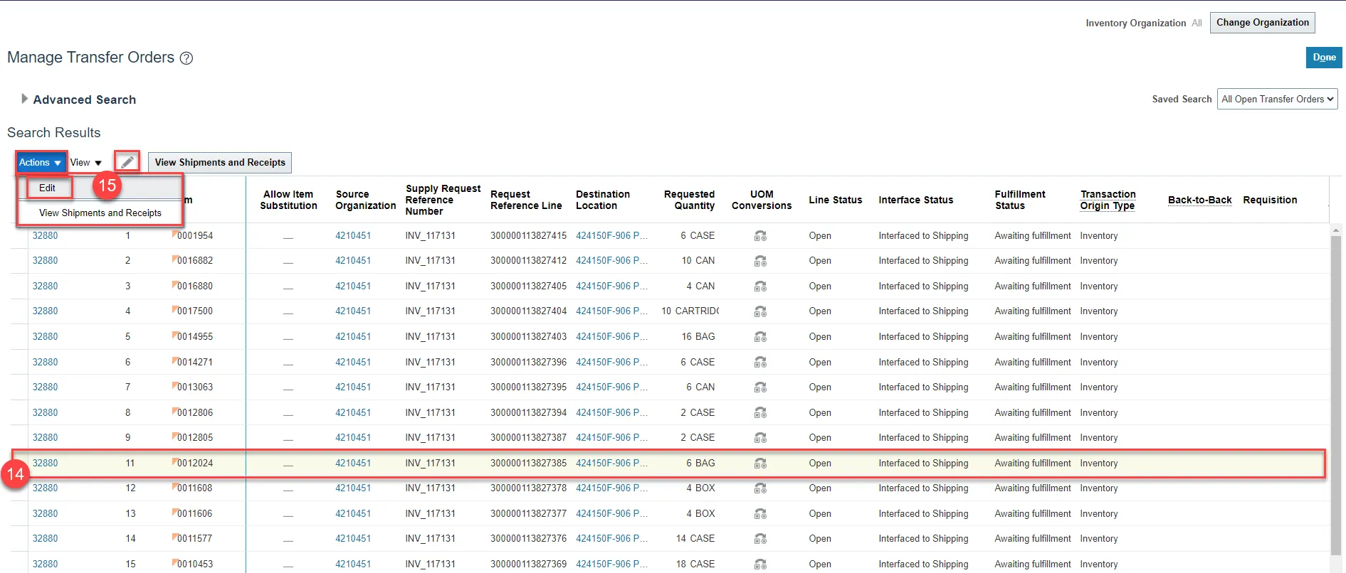 To deallocate a Transfer Order’s quantity partially post Pick Confirmation, please follow the steps below. There are 21 steps to complete this process.