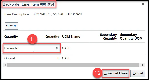 Step 11. The Backorder Line confirmation window will appear. Leave the full quantity populated in the Backorder quantity field.