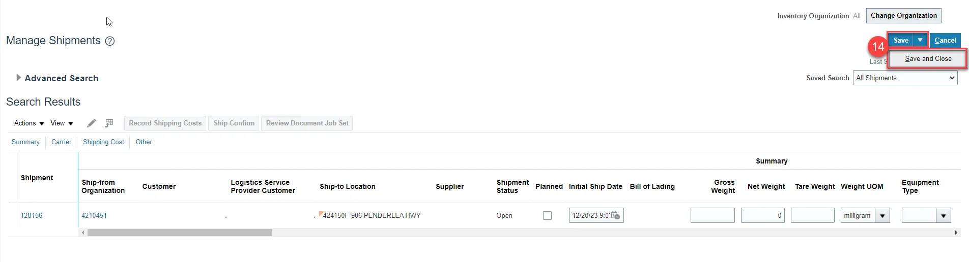 Step 8. Select the Shipment Line for the Item for deallocation.
