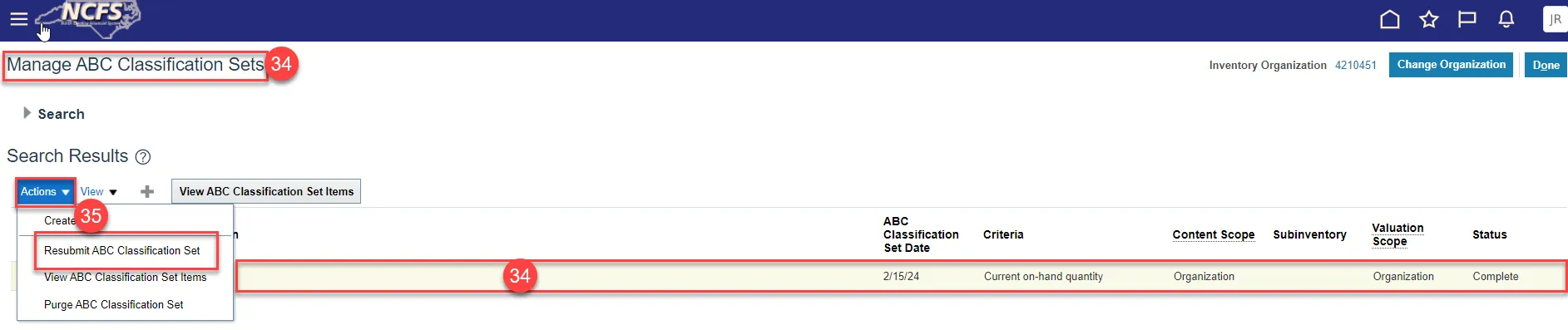 Step 35. Click on Actions and select Resubmit ABC Classification Set.
