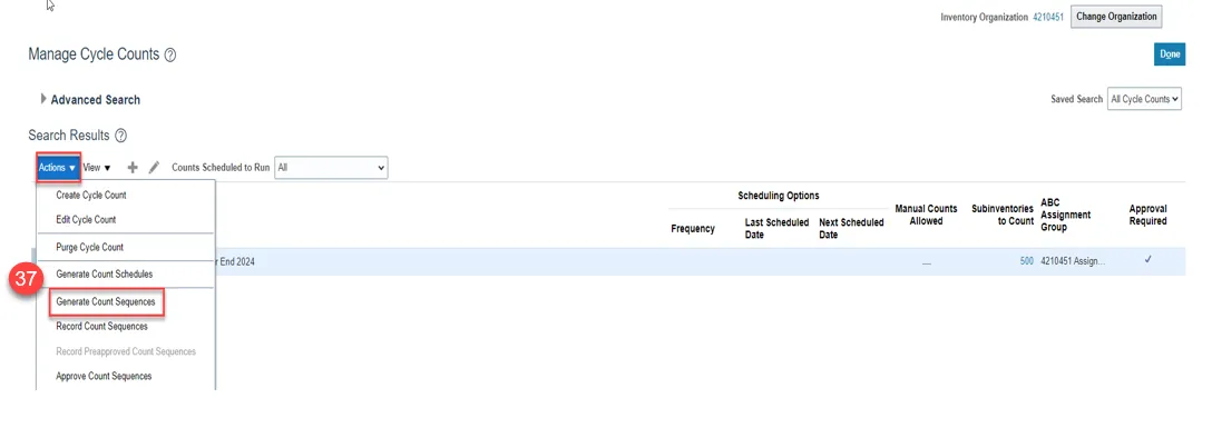 Step 35. Click Actions and select Generate Count Schedules.