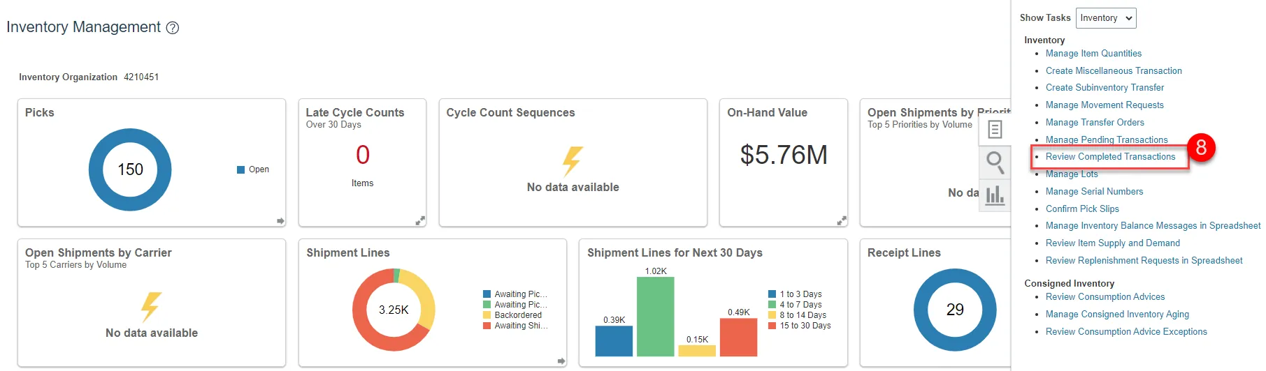 Step 11. You will be redirected to the Inventory Management Dashboard. You can see the number of Cycle Count Sequences waiting approval.