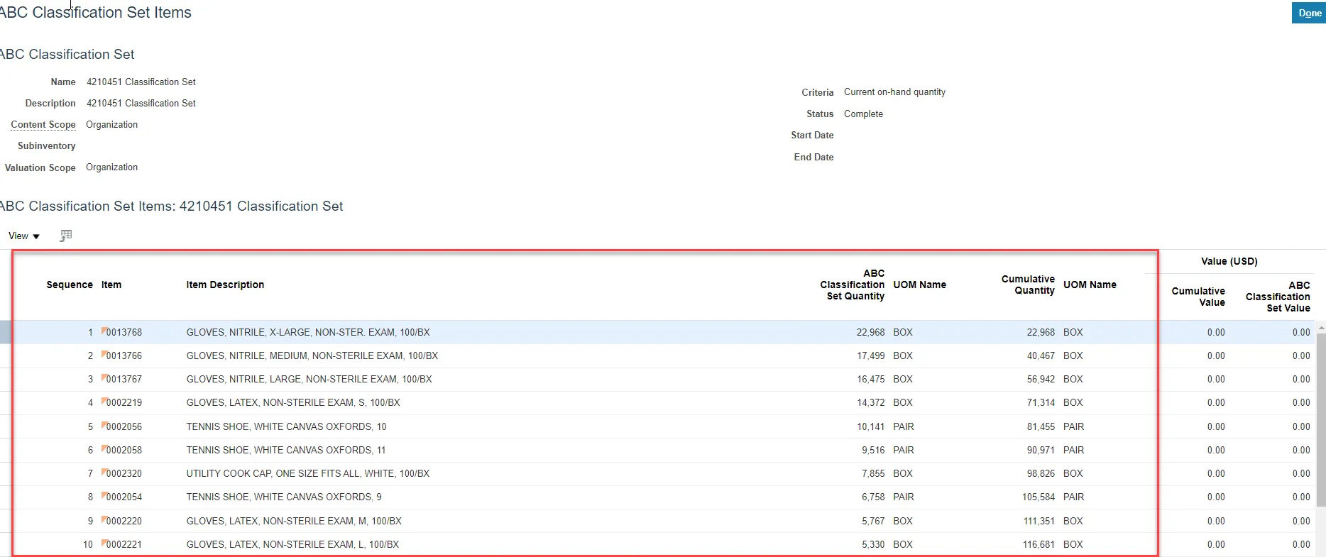 Step 13. Click View ABC Classification Set Items to view every item in this warehouse, item description, the quantity on hand and unit of measure (UOM).