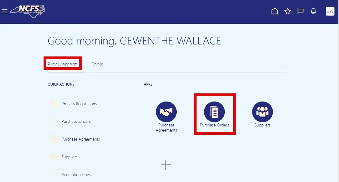 Step 1. Select the Procurement tab on the Home page.