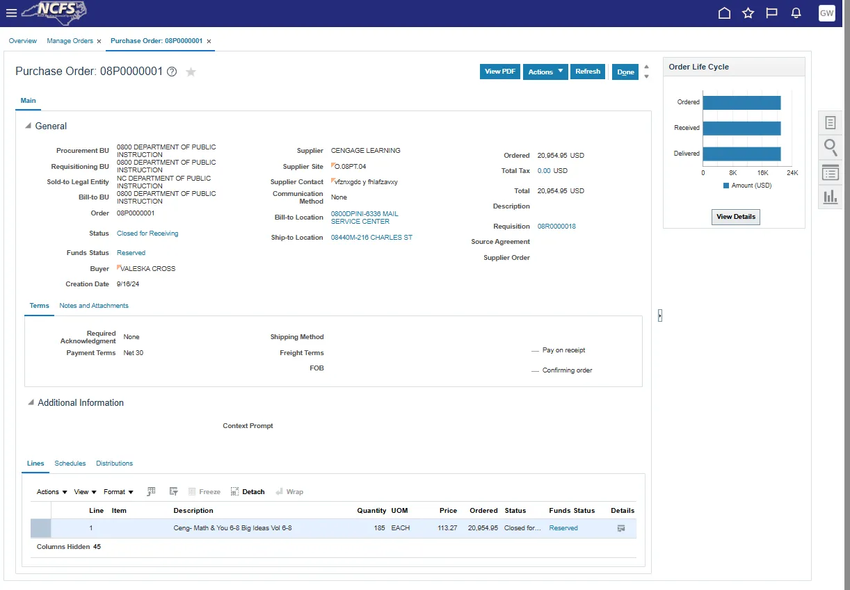 The purpose of this Quick Reference Guide (QRG) is to provide a step-by step explanation on how to process Local Education Agency (LEA) textbook orders at the Department of Public Instruction (DPI) in the North Carolina Financial System (NCFS).