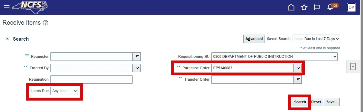 Follow these steps below to receive the order against the Purchase Order in NCFS. There are 17 steps to complete this process.