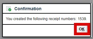 Step 12. A Confirmation window will appear with the Receipt Number.