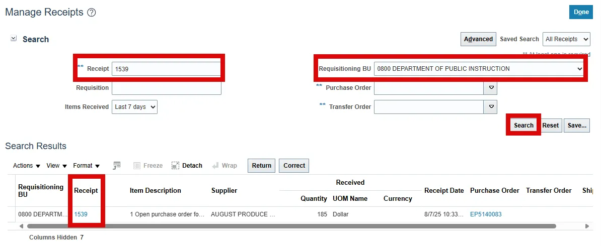 Step 17. Select Search to review the receipt details.