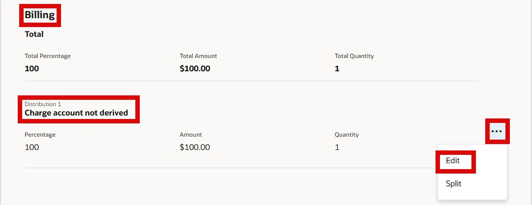 Step 18. In the Billing section, select the Actions for Test (…) and select the Edit option to enter the Charge Account.