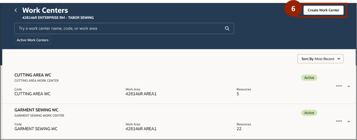 Step 6.    To set up a new Work Center on the Work Centers page, select Create Work Center.