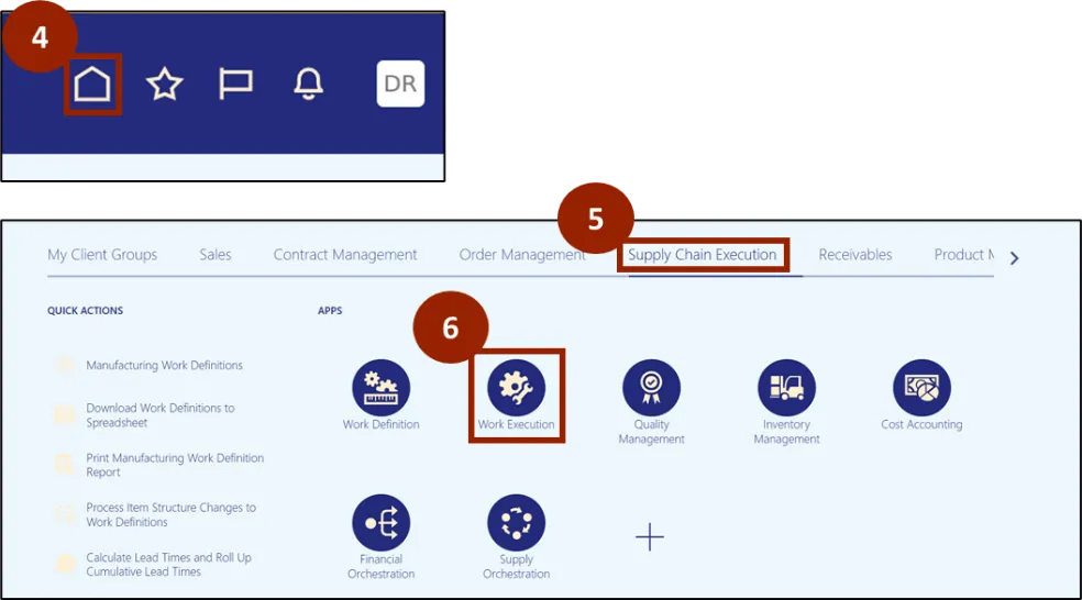 Step 11.    The default tab displays details about Work Orders, including their associated material requirements and assignments.
