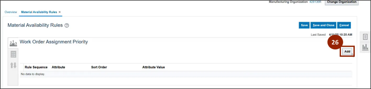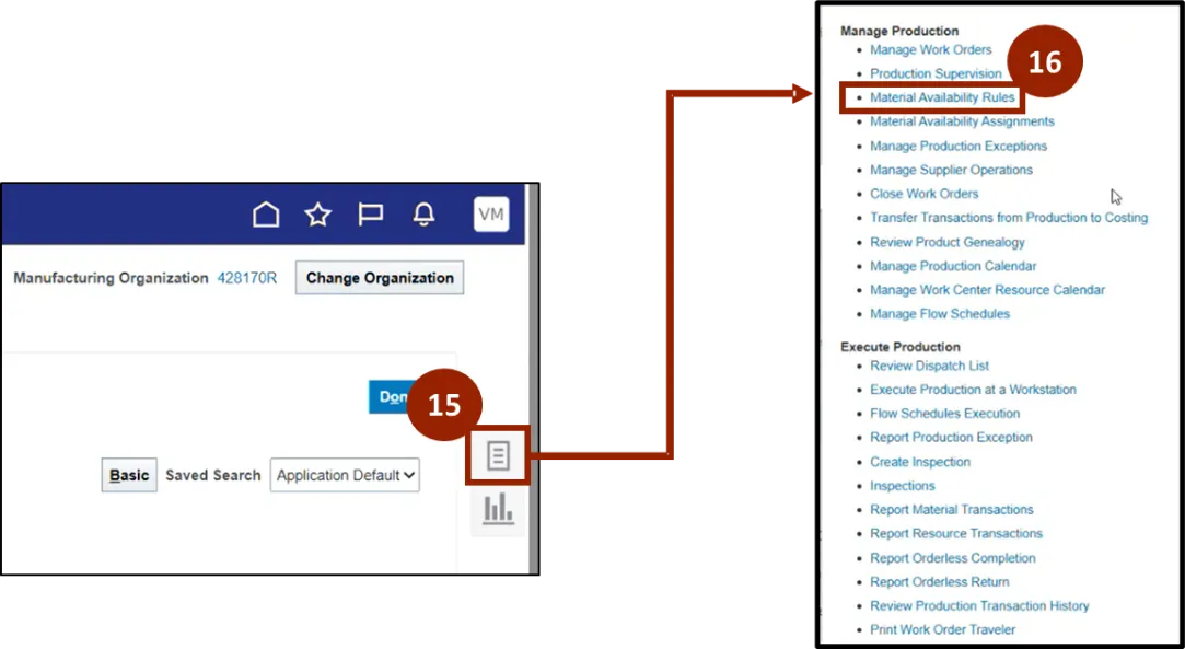 Step 15.    To create or edit Material Availability Rules, click on the Task icon on the right-hand side of the screen.