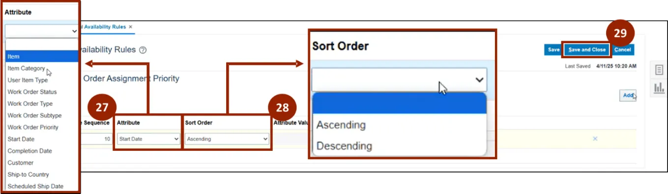 Step 28.    Click the Sort Order drop-down to choose the Sort Order.