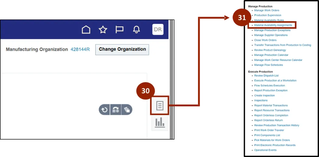 Step 8.    Under Manage Production, click on Material Availability Assignments.