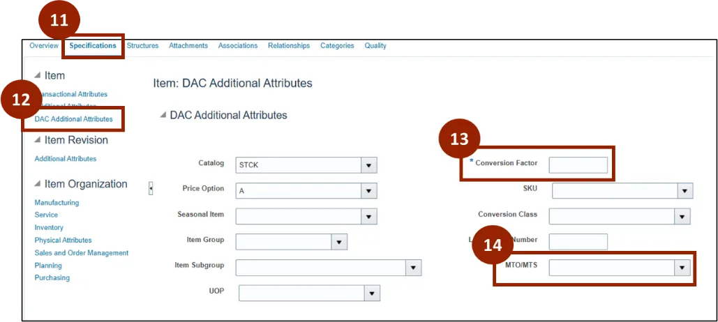 Note: When associating an Item with the Organization where it will be manufactured, select the “DAC MFG Item Template” during the association process.