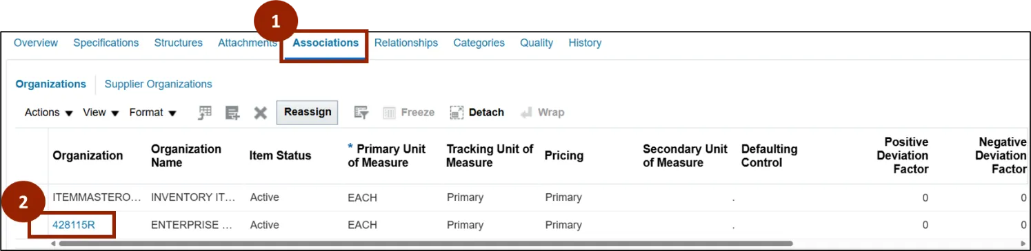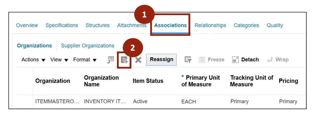 When an item is created in the system it is initially established under the ITEM MASTER ORG level. To enable the item for inventory-related transactions or operations it must be associated with an Inventory Organization.