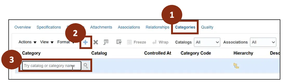 Step 3. Within the Category column, click the Search field icon to open the Search and Select: Category pop-up screen.