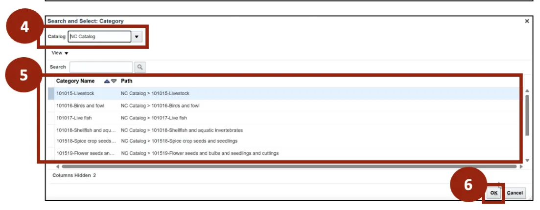 Step 6. Scroll to the bottom of the Search and Select: Category pop-up screen and select OK.
