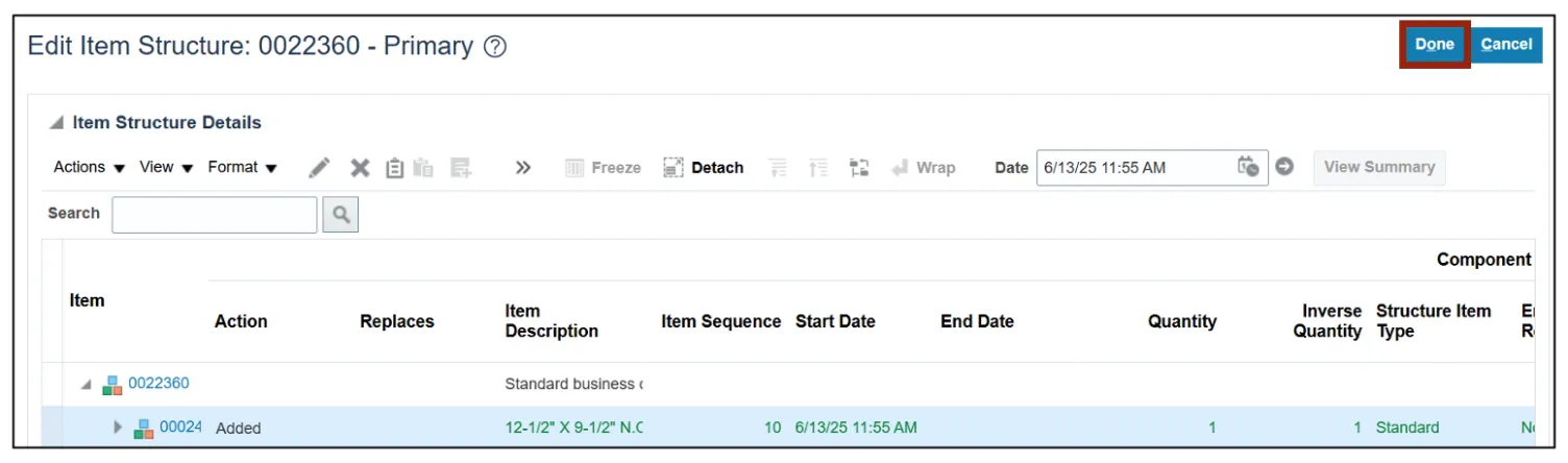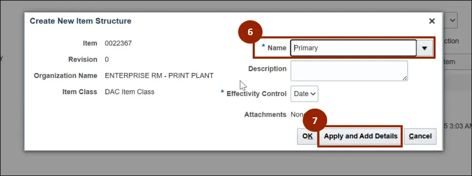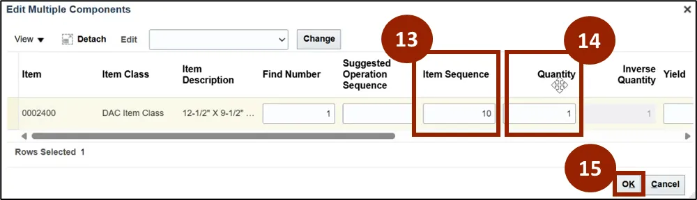 Step 13. Within the Item Sequence entry field, add the Item Sequence (the order in which the material is used in the manufacturing process) as a two-digit number (i.e. 10, 20, 30, and so on).