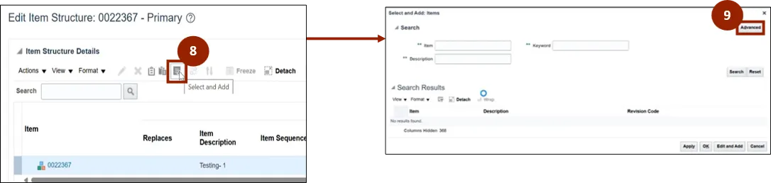 Step 8. Click the Select and Add icon to open the Select and Add: Items pop-up screen.